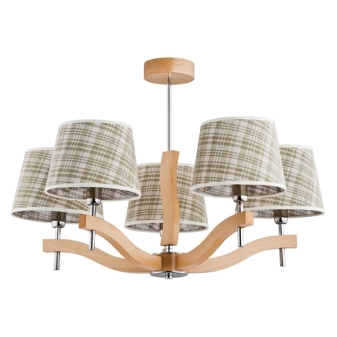 - В комбинация с естествено дърво, текстилът изглежда перфектно. Лампи с сенници – символ на топлина, уют и гостоприемство. Общата атмосфера на интериора ще зависи от това кой печат ще изберете за тях. Карирани, „полка“, абстрактни петна, малки флорални шарки, строга геометрия – опитайте се да комбинирате цветовете на мебели, завеси и други елементи с цветовата схема на полилея.