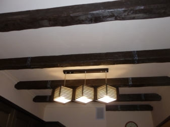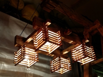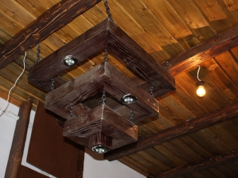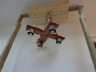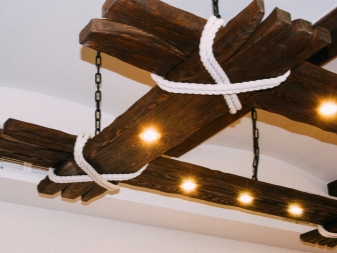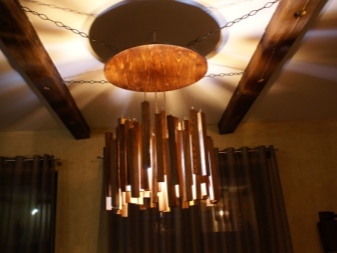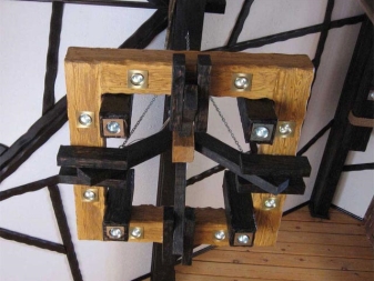 Окачени конструкции трябва да се допълни с окачване под формата на верига или кабел. Продуктът няма да се справи без здрава метална кука. Можете да закупите подобен дървен полилей за помещения с височина на тавана 2,5 m.