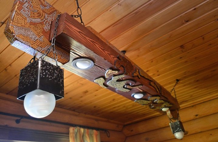 Дървен полилей на вериги придава специален чар на стаята. Той може да представлява изящен лъч с цвят венге, щанга и дори волан на кораб. Разнообразие от форми и размери – огромен брой.