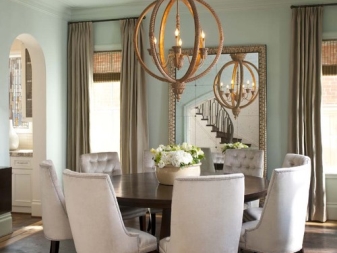Изделия от кристал, стъкло, метал и дърво се считат за най -високата степен на аристократизъм. Красивите нюанси често са украсени с модерни драперии с изискан принт.