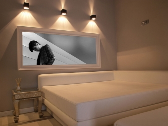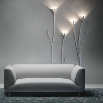 - Монтиран на стена. Те са алтернатива на класическите свещи, те се използват за осветяване на главата на леглото в спалнята, за осветяване на картини и рафтове и действат като заместител на подовите лампи.
