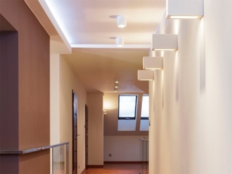 Повечето апартаменти започват с коридор, където се изисква доста ярка насочена светлина. Малките прожектори, вградени в тавана, ще осигурят необходимото осветление, като същевременно визуално няма да затрупват стаята. При ниски тавани вътрешното осветление няма да попречи на собствениците да завършат последната подготовка, преди да излязат навън..