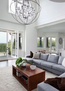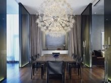 За да получите модерен и оригинален интериор у дома, без да прибягвате до помощта на специалисти, трябва да поставите голям полилей на тавана в центъра на стаята. По този начин той не само ще осветява напълно апартамента, но и ще се превърне в един вид централен обект..