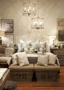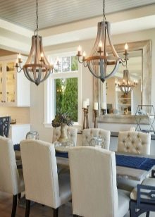 За да допълнят селския стил, много производители произвеждат големи полилеи с разнообразни метални и дървени елементи, в античен стил, много от които могат да бъдат украсени със скъпо коване. Полилеите Country и Provence ще ви помогнат да създадете перфектната и романтична атмосфера в къщата за млада двойка.