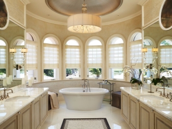 Големите полилеи ще изглеждат най -изгодни на високи лъскави или окачени тавани.