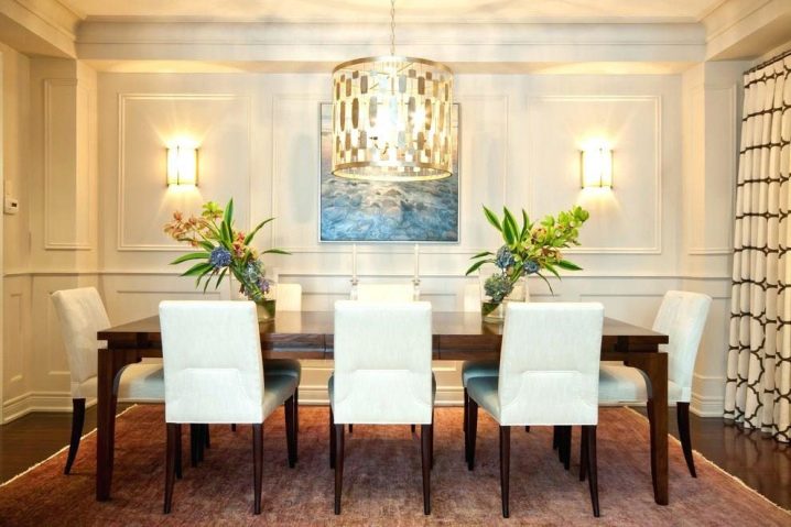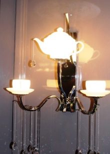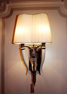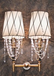 Стъклени сенки с метални инкрустации, абажури от плат и лека пластмаса, направени под формата на тъкане, изглеждат скромно и изискано. Металът има различни покрития: бронз, сребро или светло злато.