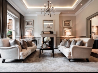 - Цветовата гама не е много широка. Обикновено това са бели, черни, бежови и кафяви нюанси. Тук са приемливи и различни пастелни цветове, както и позлата.