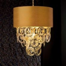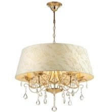 - Полилей на покрива с нюанси на плат украсени с кристални капчици. Такова устройство ще бъде подходящо както в интериора на барока и рококо, така и в неокласическия стил..