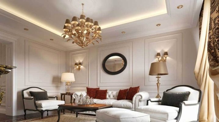 За да украсите стая в класически стил, не можете без полилей – основният източник на светлина в такава стая. Тук продуктите обикновено имат няколко нива, украсени са с различни кристални висулки. Полилеите от рожков също са доста популярни. За зонално осветление се използват стенни лампи. С тяхна помощ можете да подчертаете картина, зона за диван, пиано и много други. Такива устройства са подходящи и в спалнята (над леглото) или в коридора (за осветяване на прохода), както и на стълбите.