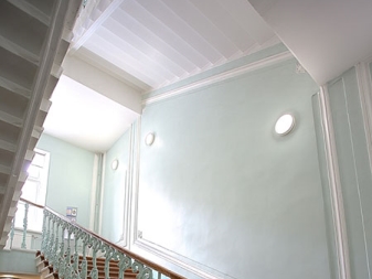 - Тези лампи не се нагряват по време на работа. Те могат безопасно да се монтират вътре в опънати тавани, които представляват филмово платно. Такива модели могат да се използват при декориране на дърво и други запалими декоративни елементи..