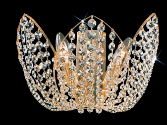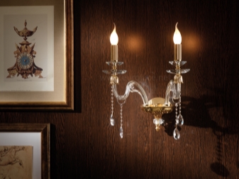 Също така са подходящи аплици, които приличат на стилни свещници от минали векове. Такива модели могат да бъдат поставени от двете страни на леглото, близо до огледала или по периметъра на стаята. За класическия стил можете да изберете модели от чешки черен кристал. Те ще изглеждат ефектно на светли стени, изпъкнали и контрастни. Кристалните аплици ще допълнят цялостната стилистична картина.