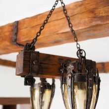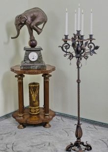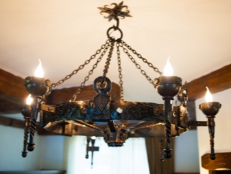 Особено внимание трябва да се обърне на свещника. Това е вид устройство, което използва свещи вместо крушки. Често тези модели са направени за стари стилове, което им позволява да се използват в подходящ интериор. В зависимост от метода на производство, лампите са фабрични и ръчно изработени.. Последният тип е особено популярен, тъй като дизайнът на лампата е почти уникален.. Но цената на такива модификации е много по -висока от щампованите аналози..