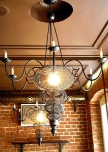 - Класически. Корпусите от ковано желязо перфектно допълват изящните многостепенни полилеи. Това ви позволява да създадете приятна игра на светлина и сянка, която ще добави изисканост и шик в стаята..
