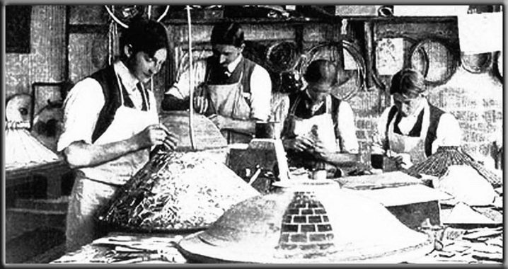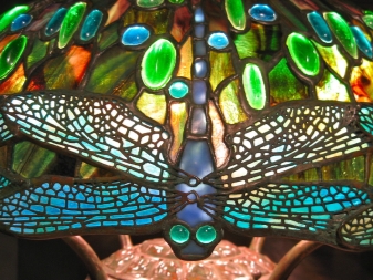 Особеността се крие във факта, че всеки детайл от продукта е обвит в медно фолио, след това се поставя върху скица на шаблона – и едва след това се запоява. Благодарение на това рисунката се оказва сложна, богато украсена и обемна, а самият абажур е лек. Такова съвършенство на технологиите обаче не беше постигнато веднага. Първоначално лентите на рамката са направени от олово. Това направи плафоните по -тежки, огрубени и лишени от обем..