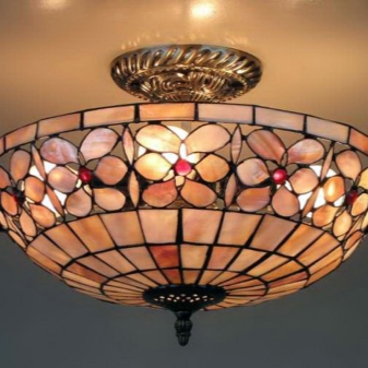 - Таван: обикновено се поставят във фоайето. Те са масивни и привличат вниманието дори когато са изключени. За тяхното производство се използва стъкло от светли цветове, така че те по -добре да пропускат светлина..