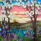 - очертанията на орнамента, нанесен върху стъклото, се подрязват със специален материал, след което самият модел се боядисва с бои с различни цветове;