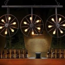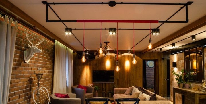 В промишлени условия масивните метални лампи или лампите на гумите изглеждат добре. Последният вариант, между другото, ви позволява да създадете ярко светлинно петно, а не да разпръсквате светлина в стаята..