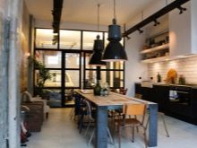 Също така си струва да се отбележи, че в стил Loft не се използва една лампа, а няколко наведнъж. Много дизайнери комбинират няколко източника на светлина в един интериор наведнъж, опитвайки се да победят всичко, така че дизайнът да изглежда стилен и необичаен.