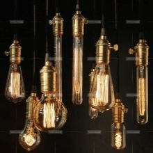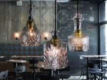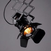 В промишлени условия масивните метални лампи или лампите на гумите изглеждат добре. Последният вариант, между другото, ви позволява да създадете ярко светлинно петно, а не да разпръсквате светлина в стаята..
