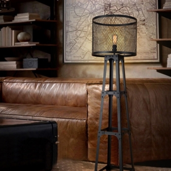 Не може да се пренебрегне такава опция за осветление като подови лампи. Високи лампи от този тип могат да украсят вашето индустриално пространство. Струва си да ги вземете в зависимост от размера на вашата стая. Колкото по -просторна е вашата къща, толкова по -масивни можете да изберете подови лампи и обратно..