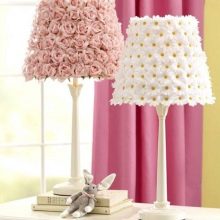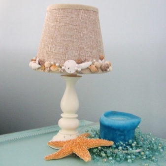 Можете да закупите опции с най -интересния декор. Това може да включва например такива необичайни елементи като черупки, мъниста и пр. Можете да създадете творчески модел или по поръчка, или сами. В последния случай не само ще спестите пари, но и ще проявите креативността си. Например, можете да приложите декупаж и сами да украсите абажура. Това става с помощта на салфетки, които по специална технология внимателно се залепват за тавана..