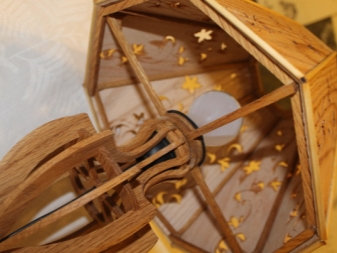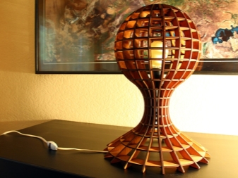 - Дървени. Такива абажури са изработени от масивно тънко дърво, където моделът е изрязан, или от тесни дървени дъски, които са добре фиксирани един към друг. Такива настолни лампи на крака ще изглеждат добре..