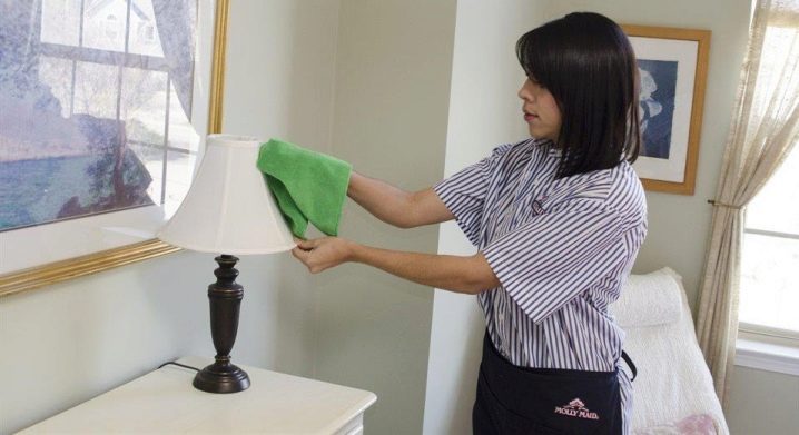 Когато се използва правилно, подовата лампа ще ви служи дълго време. Струва си периодично да се грижите за абажура, да го сваляте и почиствате. Ако това е стъклен капак, тогава ще бъде достатъчно да го избършете със салфетка, която е предварително импрегнирана с антистатично средство. Опциите за плат могат да се почистват с вакуум, като се носи специалната дюза.