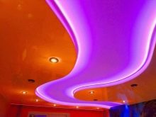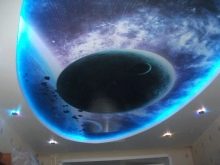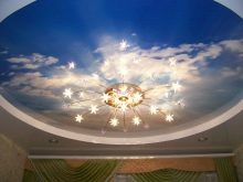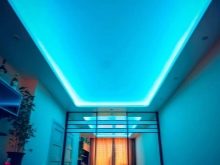 Използвайки този метод, вие ще постигнете не само естествено осветление през нощта, но и ще създадете уникална нощна светлина, красив обект на изкуството. Светещият лакиран таван (локално) ще изглежда страхотно. Просто трябва да залепите LED лентата към профила на самата конструкция. Последните могат да бъдат матови или лъскави, в зависимост от вашите предпочитания..