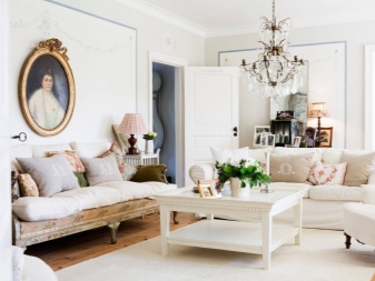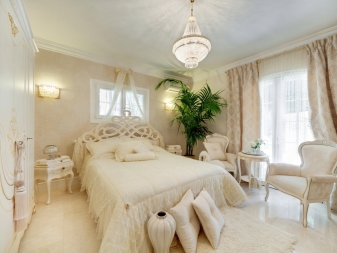 За стил романтизъм по -добре е да използвате ярък блясък, който визуално добавя квадратни метри. В допълнение към подовите лампи и бра, вградените системи за таванно осветление определено ще се вкоренят тук. По -добре е да изберете LED лампи с класическа форма: квадратни, кръгли, обемни пирамидални и т.н..