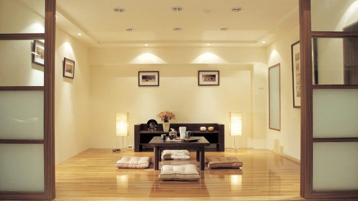 Характерна е релаксиращата светлина за японски стил. Тук ще ви бъдат полезни светодиодните димери. Вашият дом винаги ще бъде доминиран от естествена светлина през деня и мек през нощта. Пластмасовите панели могат да бъдат разгледани за високотехнологичен стил. Технологията, минимализмът, фузионният интериор могат да включват плоски алуминиеви конструкции, продукти с ефект на хромиран метал.