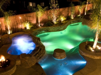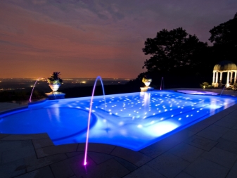 LED осветителните тела се използват не само за вътрешна употреба, но и за външно осветление. Например, така наречената подводна лампа се използва за басейни и фонтани, тя дава светлина на потоци вода, което ще помогне да се създаде един вид ландшафтен дизайн. Изборът пада върху тях, тъй като такива лампи са много прости и удобни за инсталиране, не изискват специални грижи, дълго време могат да работят напълно без подмяна и имат специално ниво на защита – IP68.