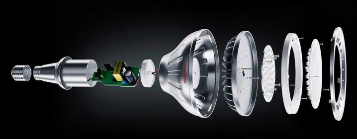 Преди да закупите, трябва да се запознаете напълно с дизайна на LED лампите като цяло. Те имат корпус, обикновено изработен от фитинги, в който са разположени светодиодите и рефлектор. Пакетът включва и охлаждащ радиатор, който служи като превантивна мярка при нагряване на осветителното тяло. За да работи продуктът, е необходимо да се осигури радиатор. Това се подпомага от специална термична паста, която смазва елементите в контакт с радиатора за по -добра проводимост..
