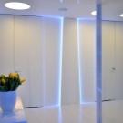 - Таванът или, както ги наричат, надземни LED лампи или “таблетна” лампа ще бъде добро решение за окачени или модулни тавани. Те също имат доста висок индекс на осветеност, а много модели имат ръчен контрол на яркостта. Допълнително предимство на този тип е, че има стени по поръчка, които са по-дълги отстрани, както и защитен екран, който ви позволява да изключите отблясъците на мониторите..