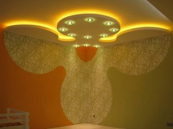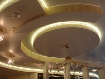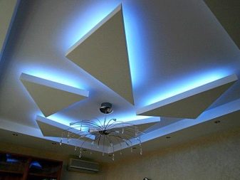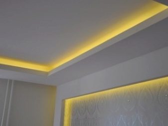 Третият вариант включва осветяване на различни елементи на тавана с LED ленти. Това е едно от най -интересните решения, които дават място за въображение..