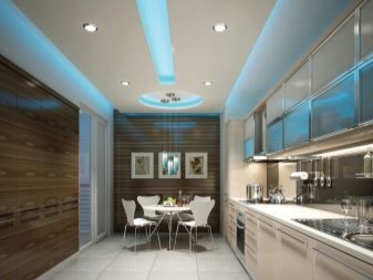 Ако основата е ъгъл, светлината ще бъде по -разсеяна. Ако имате нужда от определена посока, по-добре е да вземете U-образен профил, в долната част на който можете да скриете елемент от светлина. На снимката LED лентата е залепена към дъното на металния изходен профил от ламелния таван.