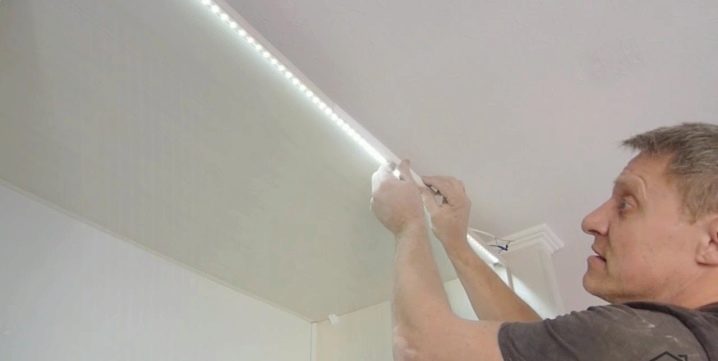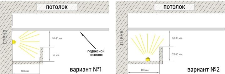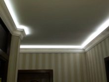 Вдлъбнатината от тавана е направена от един до три см. Цокълът трябва да бъде допълнително фиксиран със самонарезни винтове за здравината на конструкцията, чиито глави са вдлъбнати, след това шпакловани и боядисани заедно с цокъла. Колкото по -голяма е пролуката, толкова по -широка е лентата светлина, падаща от нея..