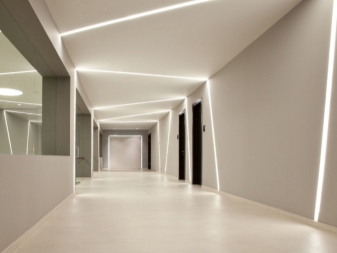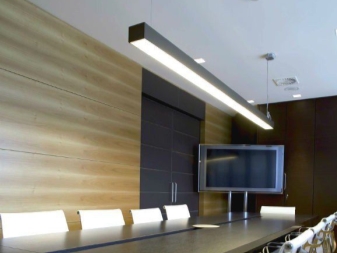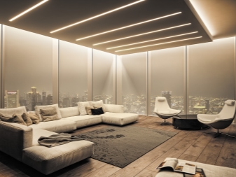 LED осветлението от профилен тип е условно разделено на три вида: вградено, окачено и повърхностно монтирано. Вградените линейни лампи са подходящи за създаване на акценти в интериора, както и за основно осветление в стаята. Висулките изглеждат много стилни и са идеални за модерен интериор. В допълнение към външните предимства, те имат функционалност и практичност. Трябва да се има предвид, че с този тип лампи ще бъде възможно да се осветява малка площ и светлината ще бъде насочена.
