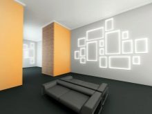 - Направете осветление на мебели, стълби и декоративни камини, ако има такива във вашата стая.