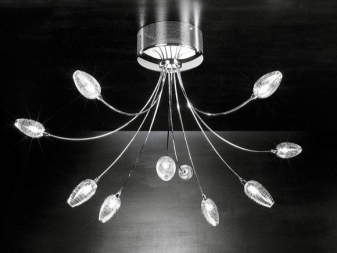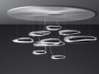 В този случай изборът ще зависи изцяло от това в коя стая трябва да се инсталира този или онзи модел полилей.. Има най-миниатюрните опции от тип таван с един нюанс, които, въпреки малките си размери, са в състояние да осигурят повече от висококачествено осветление поради добре обмислен дизайн и местоположение на източника на светлина.