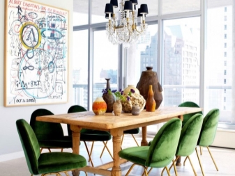 Що се отнася до типа висулка, в този случай полилеят буквално ще бъде окачен на верига или друг стилизиран поддържащ елемент. Разбира се, по -добре е да изберете такива модели, когато става въпрос за стая с по -високи тавани и достатъчно допълнително пространство, тъй като полилеят ще излиза значително по -дълбоко в стаята..