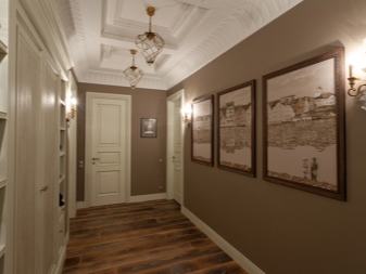 Дългите коридори и коридори могат да бъдат украсени с лампи над картини или фотографии..