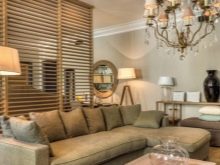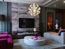 Модните лампи ще бъдат чудесно допълнение дори към малка всекидневна или антре. В такава стая можете да използвате полилей или изобилие от миниатюрни лампи, разпръснати по тавана, основното е, че всичко това успешно се комбинира със стила на стаята. С правилното разположение и свързване на фоновото осветление можете много изгодно да победите вътрешността на стаята, като подчертаете определени части от нея, като същевременно регулирате необходимия интензитет на светлината.