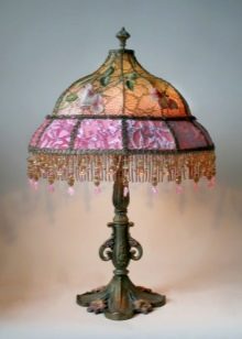 Ако вече имате лампа със сенник, тогава е възможно да я актуализирате сами и да я направите изключителна. Всичко може да се използва за декорация. Копчета, разноцветни сатенени панделки, дантели, мъниста и мъниста, висулки, парчета плат, канап, салфетки за декупаж и много други.