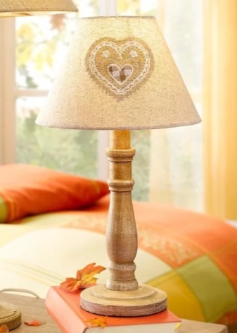 Керамична или стъклена основа с ажурен абажур от плат създава романтична атмосфера в стаята.