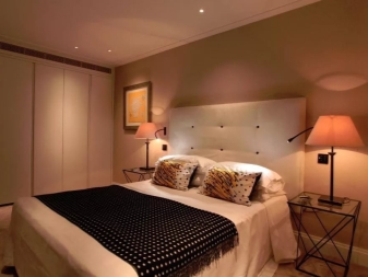 За правилната организация на осветлението в спалнята трябва да се вземе предвид дизайнът и размерът на стаята. Така че за големи помещения ще са необходими по -големи и по -мощни уреди, които да запълнят цялото пространство със светлина. Компактните лампи ще изглеждат страхотно в малка спалня.