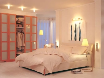 За правилната организация на осветлението в спалнята трябва да се вземе предвид дизайнът и размерът на стаята. Така че за големи помещения ще са необходими по -големи и по -мощни уреди, които да запълнят цялото пространство със светлина. Компактните лампи ще изглеждат страхотно в малка спалня.