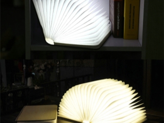 - Нощните лампи с формата на книга станаха много популярни.. Огромното предимство на тези модели е, че те могат да бъдат зареждани и взети с вас. Интензивността и цветът на сиянието се променят в зависимост от това колко отворена е „книгата“. Светлината, която дава, когато е напълно разгъната, е достатъчна за четене.