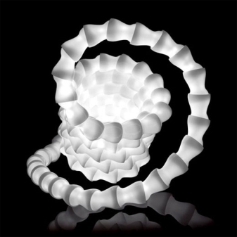 - Още една творческа идея. Лампа “Бездна” от компанията Кундалини представени като затворена верига. Той предизвиква различни асоциации за всеки, но определено е много необичаен. Необичайността му се крие във факта, че може да получи всяка желана форма. Диодите са скрити под тънка бяла пластмаса, която осигурява чиста, приятна светлина.