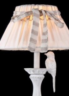 Керамична или стъклена основа с ажурен абажур от плат създава романтична атмосфера в стаята.