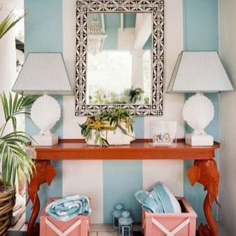 Можете да подчертаете съществуваща маса в коридора или хола, като използвате класически опции под текстилни нюанси. В спалнята ще бъде подходяща димируема светлина, която ще осигури добро осветление, например за четене, и ще поддържа интимна атмосфера на помещението без осветление отгоре..